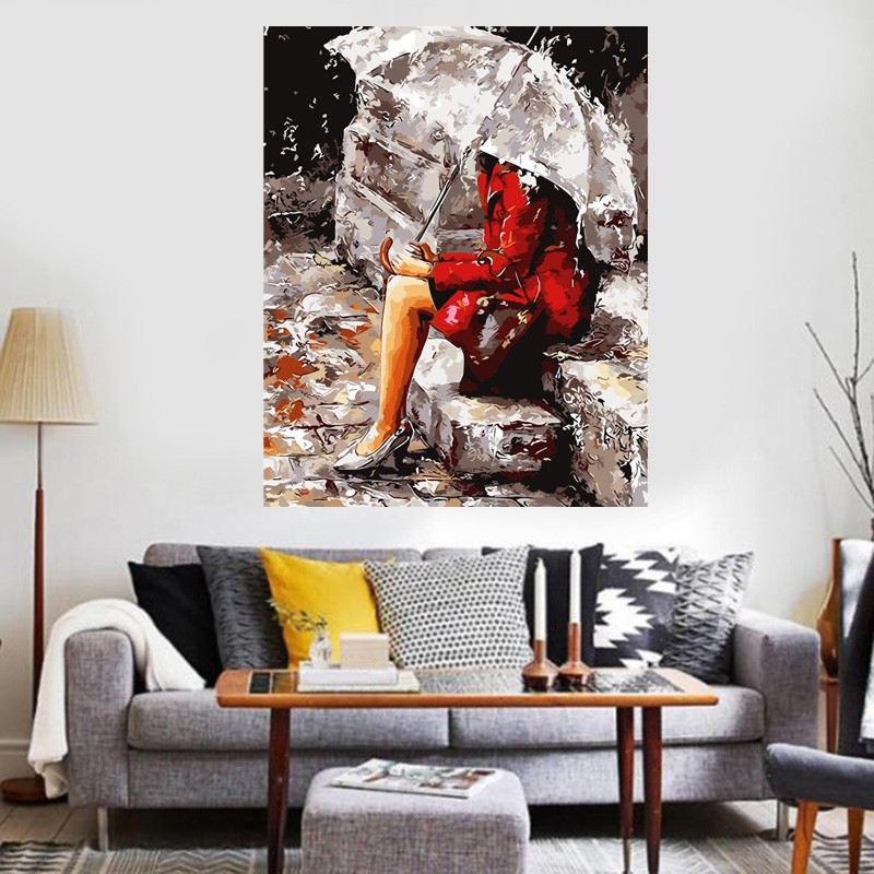 Paint By Numbers For Adults Diy Canvas Oil Painting Kit Painting Kit For Kids Adults Umbrella Woman Shopee Indonesia
